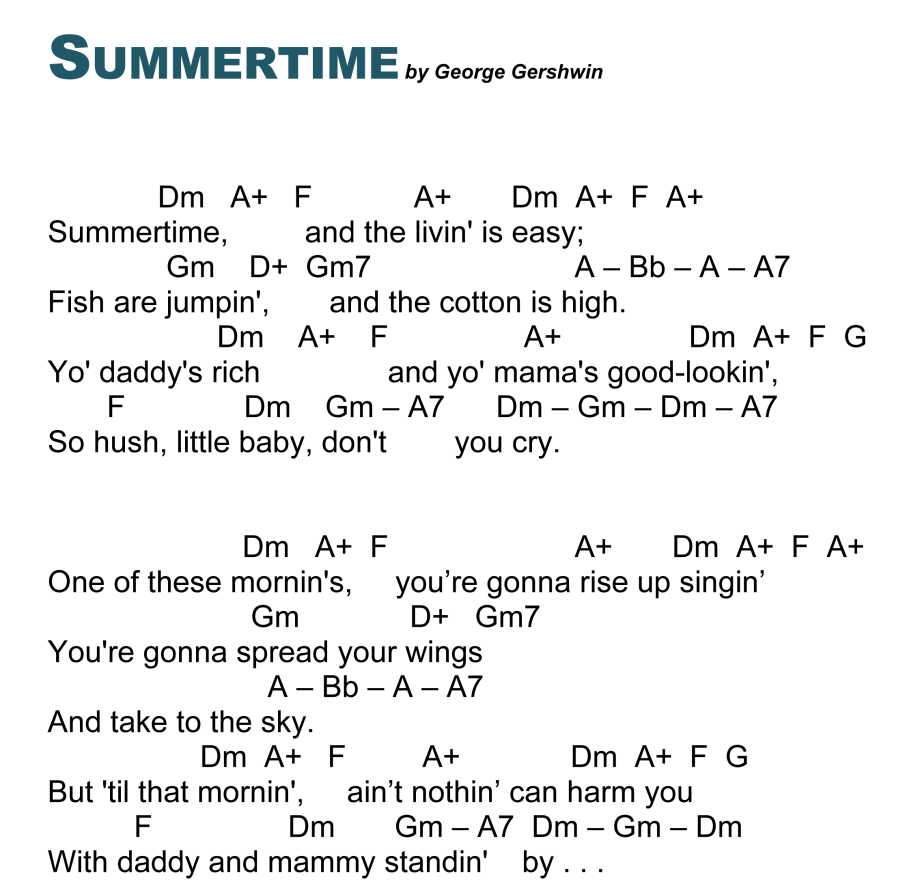 SUMMERTIME . . . . A Gershwin classic for the ukulele