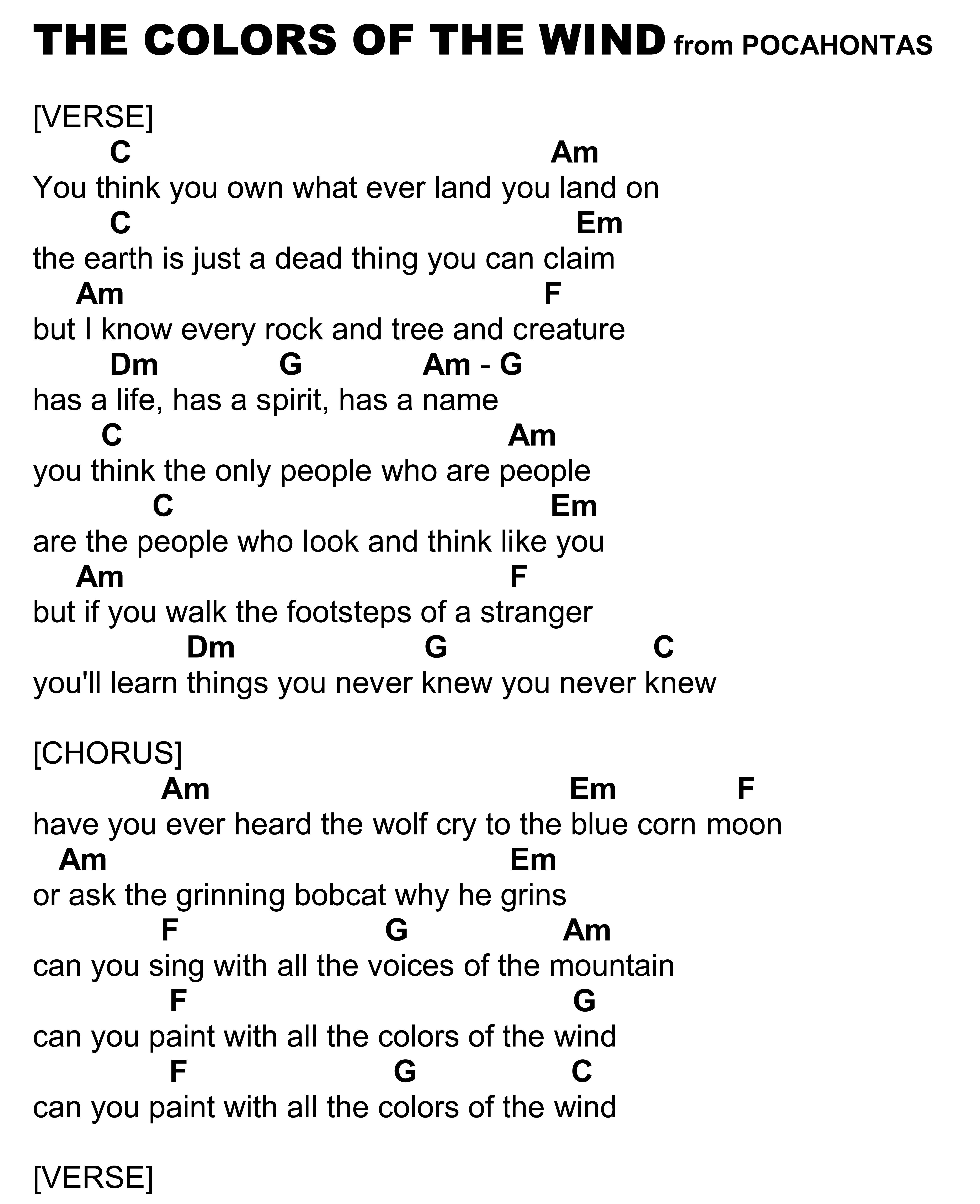 THE COLORS OF THE WIND – from Disney’s POCAHONTAS . . . A lesson by “UKULELE MIKE”