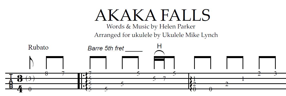 AKAKA FALLS – Ukulele solo instrumental arrangement by Ukulele Mike Lynch