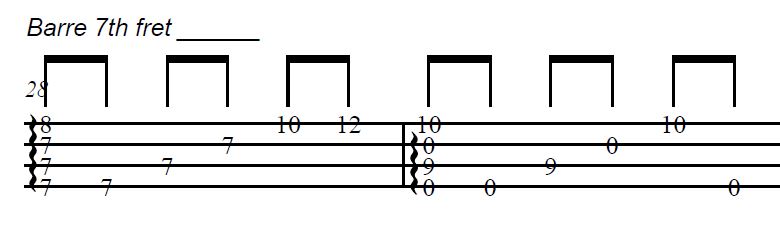 I was inspired later that week to come up with my own arrangement of this song. I was strongly influenced by Jake’s arrangement and several others I found online. Below are several clips from my arrangement. Note the harp-like rolls I have notated in the score. Those are intended to give the piece a more flowing feeling and also to fill out the sound. Since the ukulele only has 4 strings, by rolling the chords one can create an illusion of a larger fuller instrument.