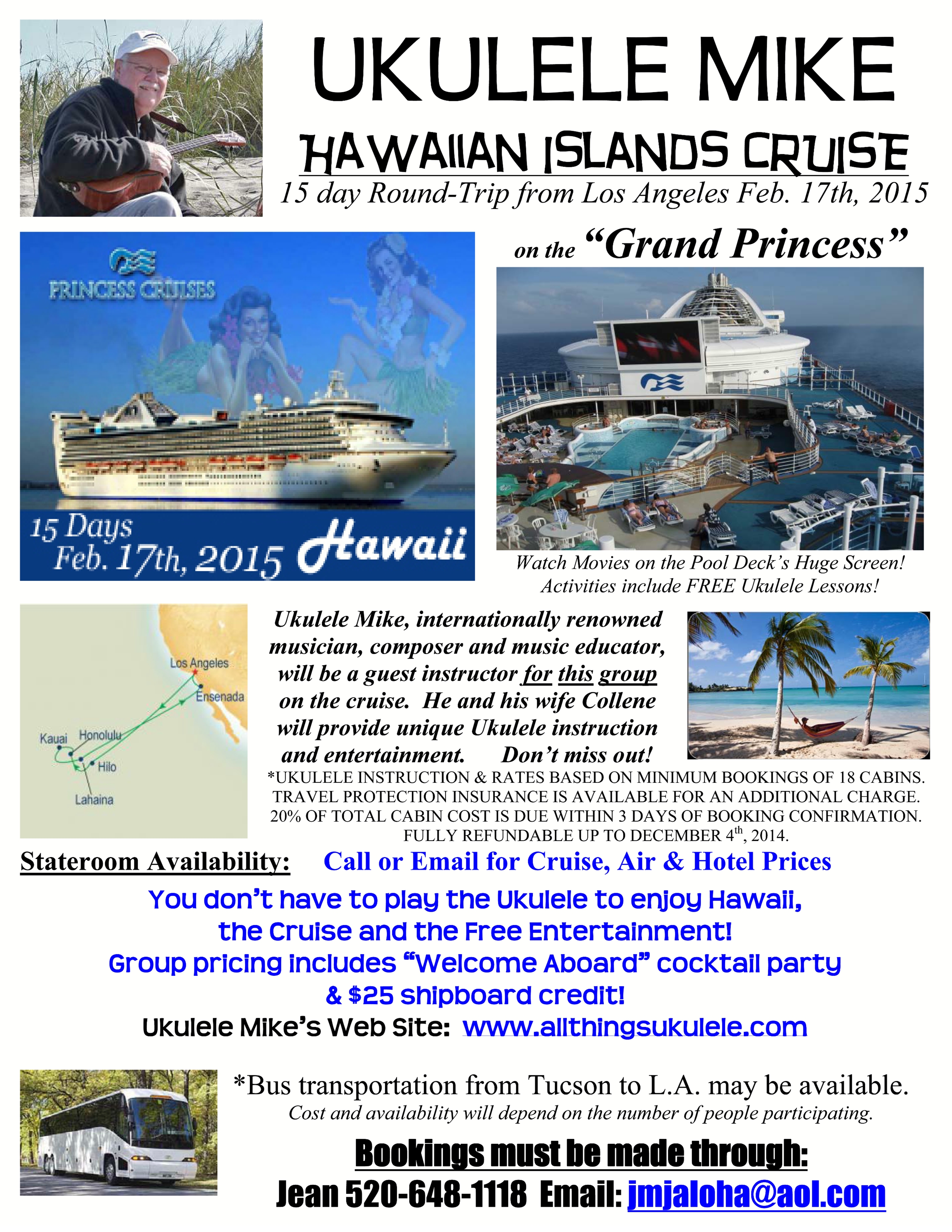 Last year’s ukulele cruise on the Golden Princess was a resounding success and so we are planning another one. Check out the flyer below for Cruise details . .