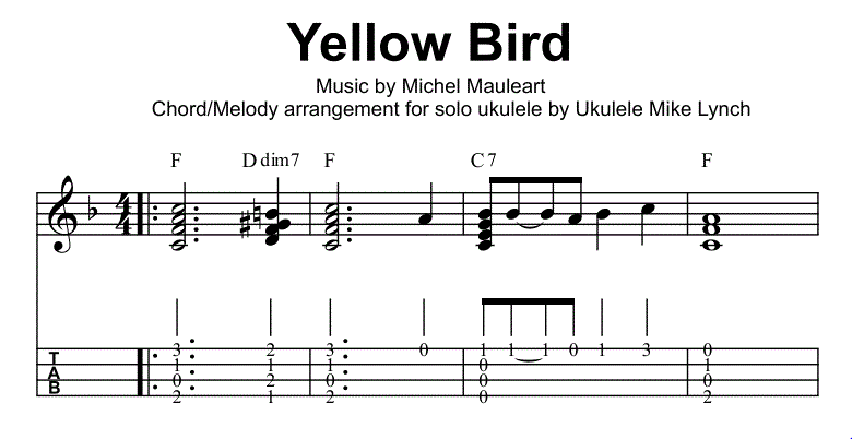 19th Century Haitian song “YELLOW BIRD”. . . . Chord Melody arrangement included in the CHORD/MELODY eBOOK TWO from Ukulele Mike Lynch . . . . now reduced to just $20.00