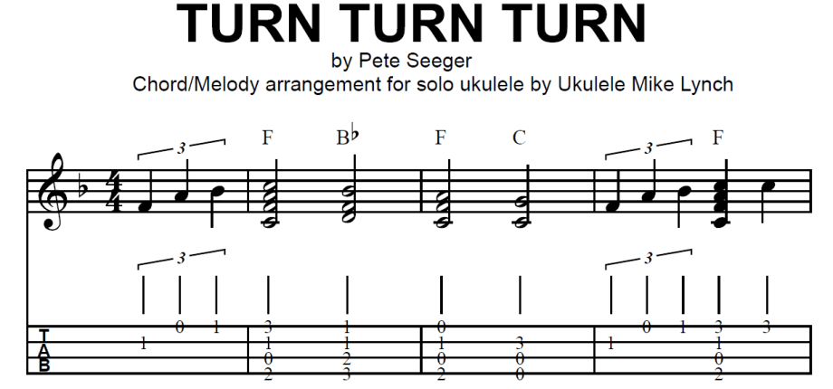“TURN, TURN, TURN” by Pete Seeger . . . . Chord Melody arrangement by Ukulele Mike Lynch . . . . Included in the new Chord Melody ebook FOUR . . . Check out the Christmas Chord melody ebook