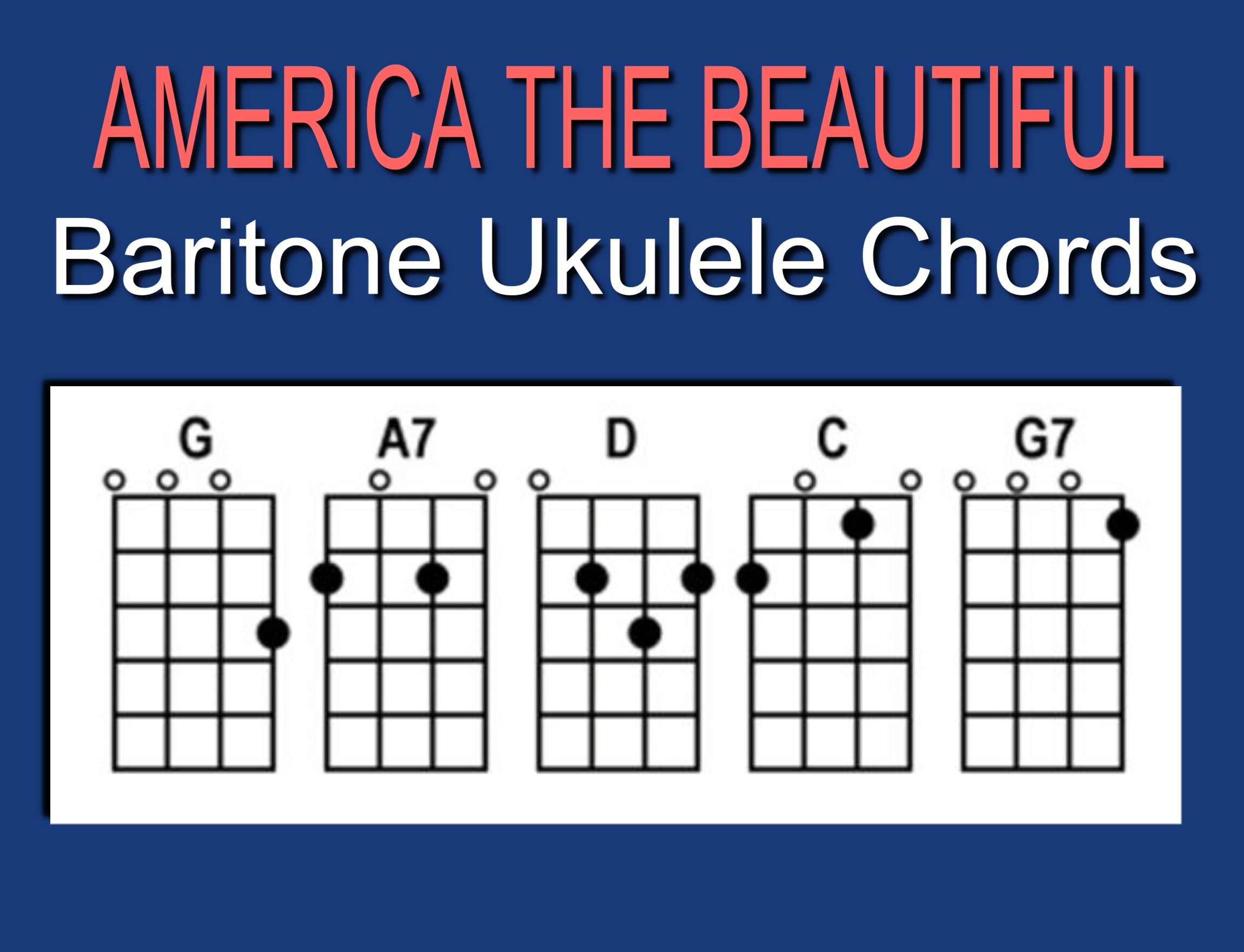 If you wish to play “America The Beautiful” on the baritone ukulele, here are the chords