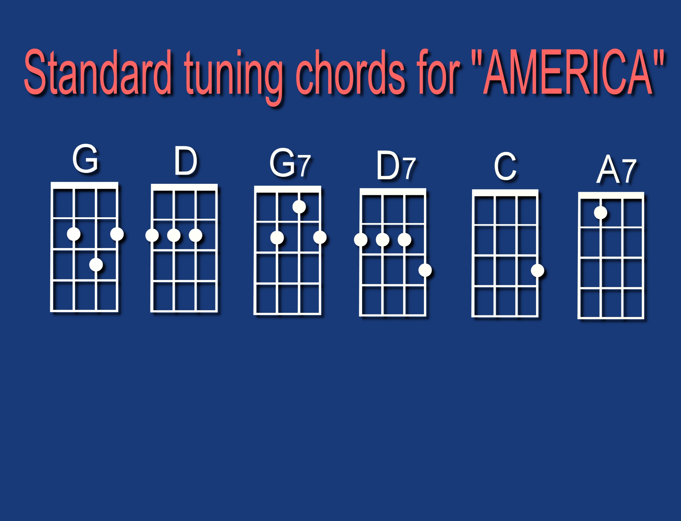 Here are the standard tuning chords used in playing “America The Beautiful”